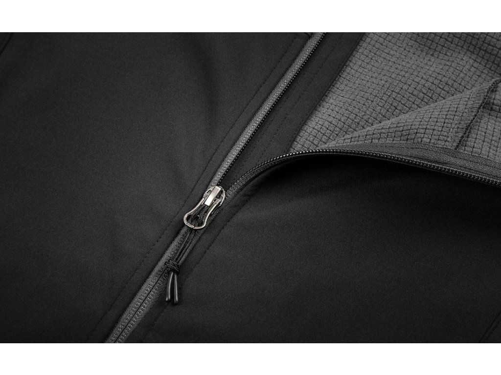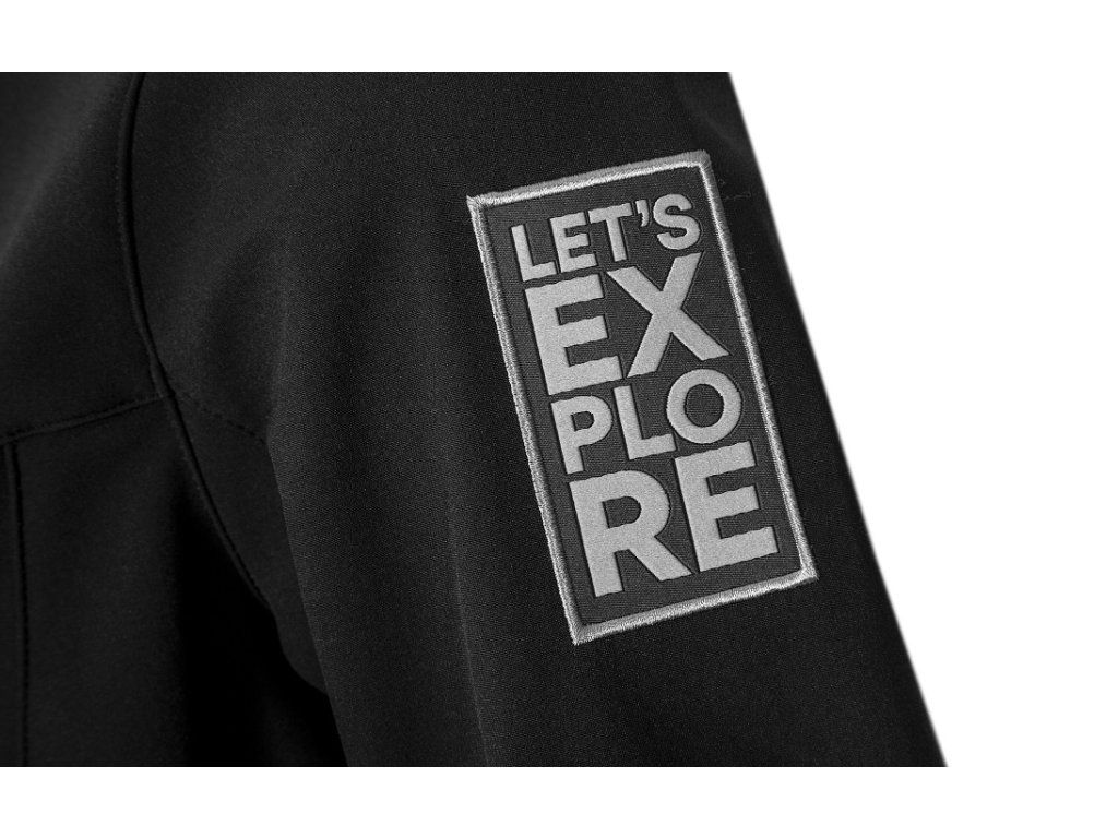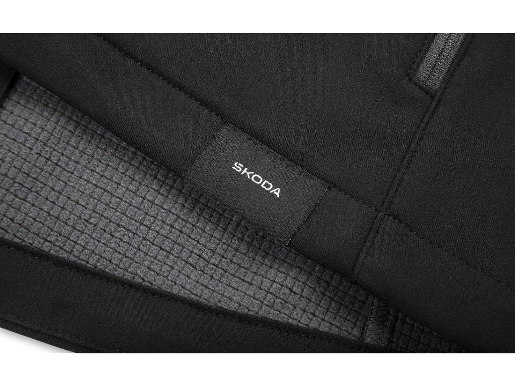 Antracitová barva, značkové zipy YKK, tkaný label Škoda a nášivka Let’s Explore dodávají bundě moderní outdoorový vzhled.