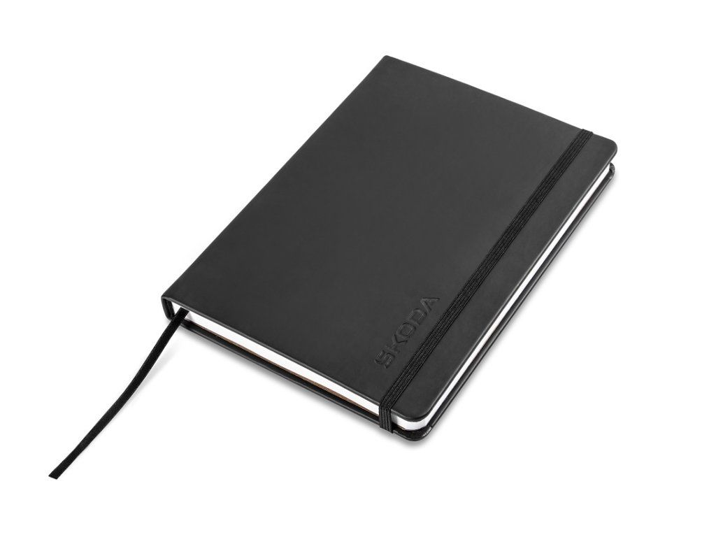Stylový zápisník Škoda v elegantní černé barvě je ideálním společníkem pro poznámky, nápady i každodenní plánování.
